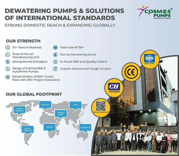 We at Cosmos Pumps offer a complete variety of sewage pumps for all the varying customer uses in the USA and UK. From municipal waste treatment to industrial applications to flood control, our solutions always bring reliable one-stop solutions and peace of mind.
